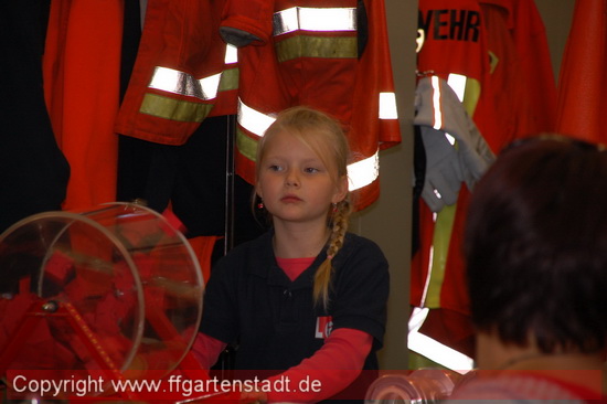 Neben dem Losverkauf gab es am Infostand auch wieder die Möglichkeit Kinderfeuerwehrhelme zu erwerben und sich zur Mitarbeit bei der FF Gartenstadt zu informieren. Zusätzlich fand die Beratung zu Rauchmeldern und Feuerlöschern statt. Vor Ort konnte der Umgang mit dem Feuerlöscher unter Anleitung eines Feuerwehrkameraden ausprobiert werden.