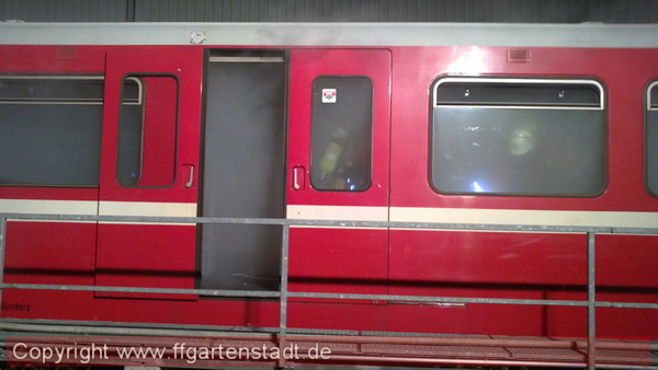 In einem zweiteiligen U-Bahnzug kam es zum Schwelbrand mit starker Rauchentwicklung im Fahrgastraum des vorderen Wagens. Obwohl der Halt im Freibereich erfolgte konnten sich die Fahrgäste zunächst nicht selbst in Sicherheit bringen, da die Entriegelung der Türen nicht mehr funktionierte.