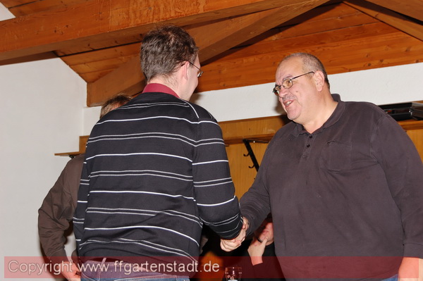 Vor der Ausgabe des Jahresdienstplanes durch den Löschzugführer, erhielt Kamerad Andreas Stock nachträglich seine Beförderung zum Hauptfeuerwehrmann. Werner Schwankhart wurde zum Löschmeister befördert. Beide waren an der Jahresabschlussfeier im Dezember entschuldigt.
