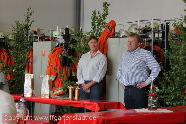 In diesem Jahr gab es für die Löschzugführung der Freiwilligen Feuerwehr Gartenstadt ganz besondere Ehrentage. Am 1. Januar 1972 trat unser stellvertretender Löschzugführer, Volker Kaiser, in den Feuerwehrdienst ein, so dass er am gleichen Tag im Jahre 2012 sein 40-jähriges Jubiläum erreichte. Günter Papak, der Löschzugführer der Wehr, konnte am 1. Mai 2012 auf 25 Jahre Tätigkeit im Ehrenamt zurückblicken.