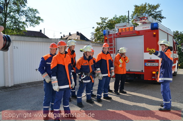 Höhepunkt bildeten die beiden Vorführungen der Jugendgruppe. Zweimal konnten die Interessierten zuschauen wie professionell nach Vorbild der aktiven Mannschaft ein simulierter Garagenbrand bekämpft wurde. Dabei kamen viele Aspekte der Jugendfeuerwehrausbildung zum Tragen. Mit der Verkehrsabsicherung, dem Aufbau eines Löschangriffes, der Vornahme einer Steckleiter und Knotenkunde stellten die Jugendlichen ihr vorhandenes Können unter Beweis. Wir freuen uns über so viel Interesse an unserer Arbeit mit den zukünftigen Feuerwehrmännern.