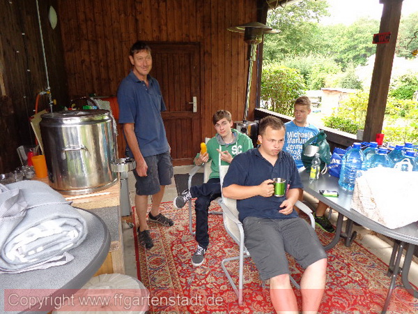 Die Jugendgruppe der FF Gartenstadt fuhr über das vergangene Wochenende, vom 11. Bis 13. Juli 2014, zum Zelten in das Gartengrundstück unseres zweiten Löschzugführers, Volker Kaiser. Der Wetterbericht versprach einen Mix aus Sonne und dichten Wolken mit kräftigen Schauern.