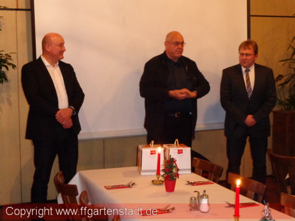 Unser Gast Rolf P. Maschke, stellvertretender Leiter der BF Nürnberg, ging in seinem Grußwort auf das gefährliche Ehrenamt unserer Kameraden ein sowie auf den gesellschaftlichen Stellenwert der Feuerwehr. Stadtbrandrat Günter Herzog, der selbst Mitglied in unserem Verein ist, würdigte ebenso die erbrachten Leistungen und gab einen aktuellen Status zum Stadtratsbeschluss für die Ertüchtigung der Feuerwehrgerätehäuser ab. Für die Gartenstädter Wehr bedeutet dies sehr wahrscheinlich einen Teilneubau, bis auf die zwei im Jahr 2000 errichteten Fahrzeugstellplätze.