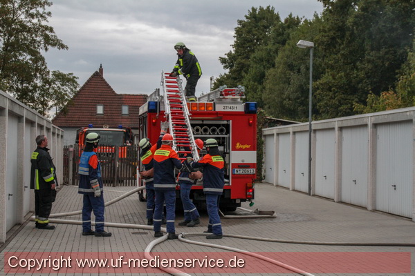 Unsere Jugend zeigte bei einem simulierten Garagenbrand ihr ganzes Können. Mit großem Engagement meisterten sie die durchaus nicht einfache Lage. Wasserversorgung aufbauen, Garage öffnen, Verletztenrettung waren die ersten Aufgaben, die es abzuarbeiten galt. Eine Einsatzlage wie sie auch im realen Feuerwehralltag immer wieder vorkommen kann. Eine sicherlich weitere Herausforderung war, das alles vor großem Publikum zu tun. Hierfür unser großer Respekt für die tolle Übung, die fehlerfrei und zügig absolviert wurde. Ein besonderer Dank gilt hierbei natürlich auch unseren Jugendwarten, die für solch einen guten Ausbildungsstand sorgen.