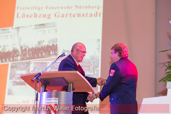 Weitere Grußworte folgten durch den Schirmherren Herrn Oberbürgermeister Dr. Ulrich Maly, dem Leiter der Feuerwehr Nürnberg Herrn Stadtdirektor Volker Skrok, unserem Kommandanten dem Stadtbrandrat Herrn Günter Herzog, und dem Löschzugführer des Löschzuges Gartenstadt Herrn Günter Papak, welcher auch einen interessanten Rückblick auf die Geschichte der Gartenstädter Feuerwehr dargelegt hat.